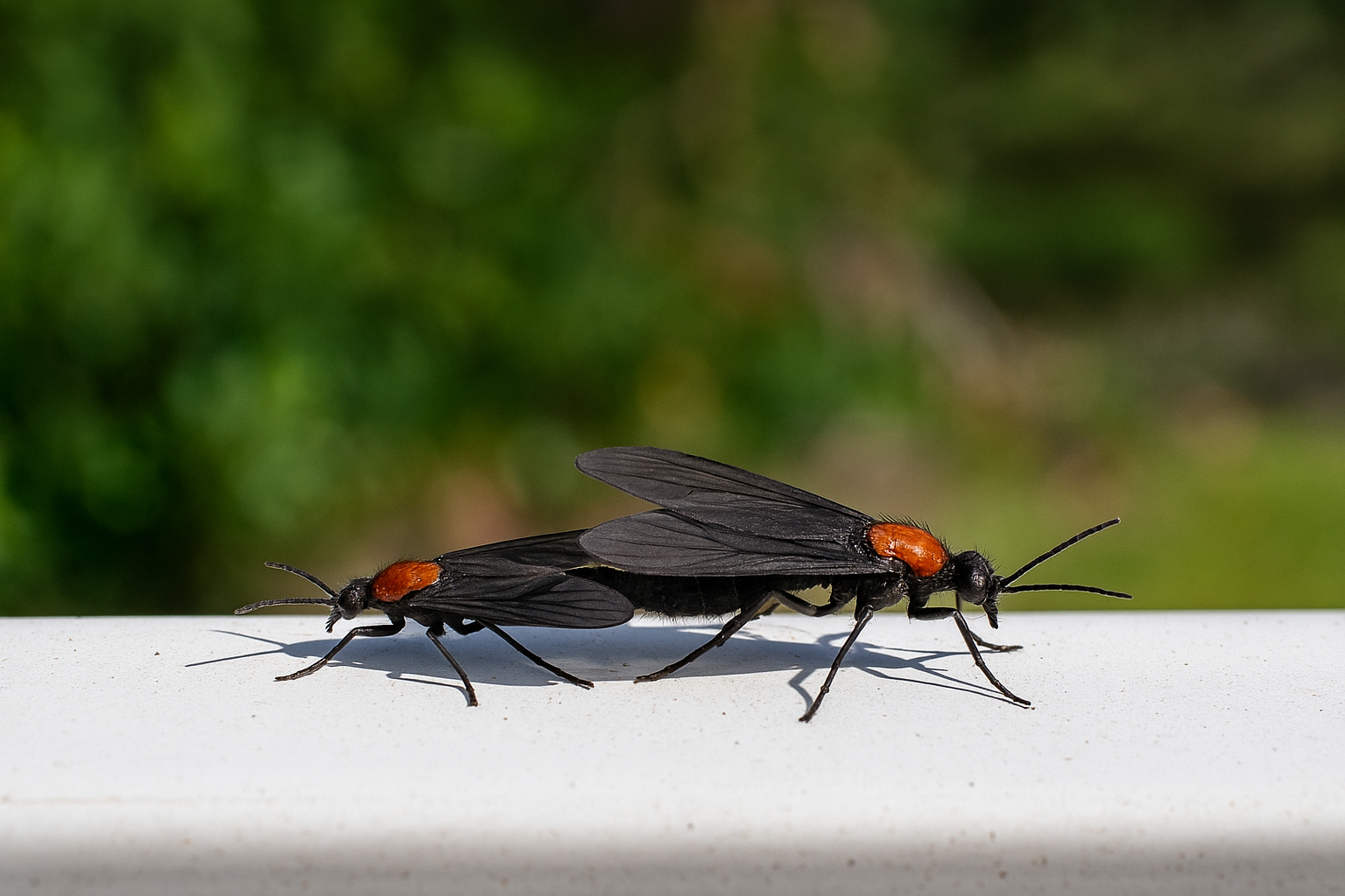 러브버그는 짝짓기한 상태로 장시간 함께 날아다니는 특이한 번식 행동을 보입니다. 수컷과 암컷이 엉덩이 쪽으로 붙어 공중에서 함께 이동하며, 이 상태가 수 시간에서 길게는 하루 이상 지속됩니다. 이런 행동은 러브버그의 이름을 결정지은 가장 큰 특징이기도 하죠.